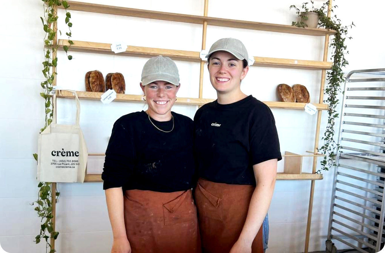 Crème c’est Marie-Eve, boulangère et Karelle, pâtissière, qui partagent la même vision et les même valeurs; éviter le gaspillage alimentaire et revaloriser des produits imparfaits ou en fin de vie. Crème c’est aussi une équipe authentique derrière des produits faits à la main et locaux.