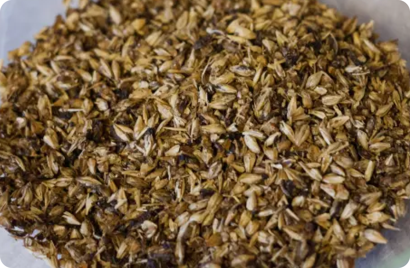 La drêche, l’idée derrière la création de l’entreprise. Celle-ci est la matière résiduelle